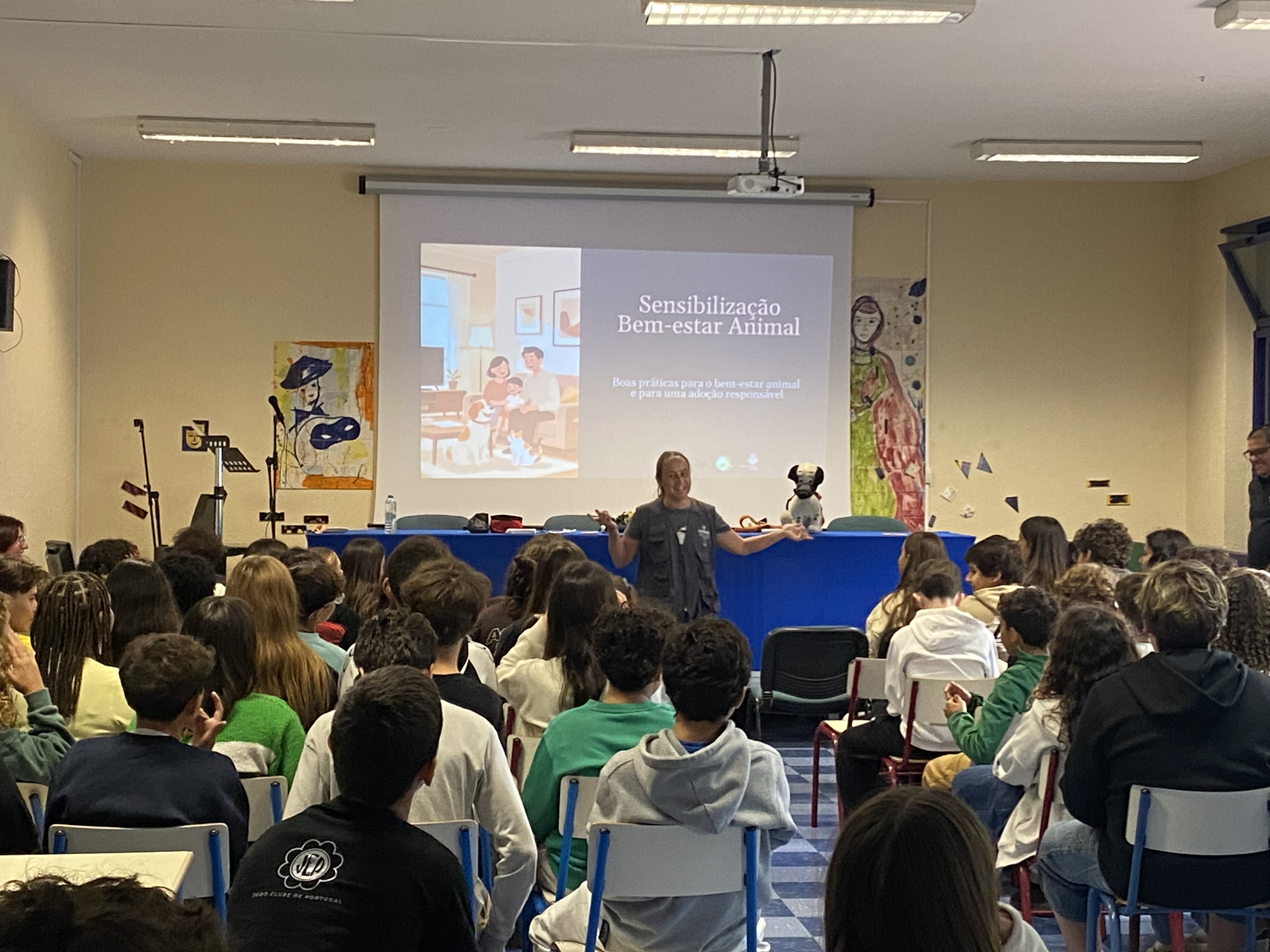 A visita do Centro de Recolha Oficial de Animais do Município de Oeiras (CROAMO) à escola, tem como objetivo principal a sensibilização das crianças e jovens para a proteção e o bem-estar animal, abordando as boas práticas com os animais de companhia em meio urbano e as regras para uma adoção responsável.