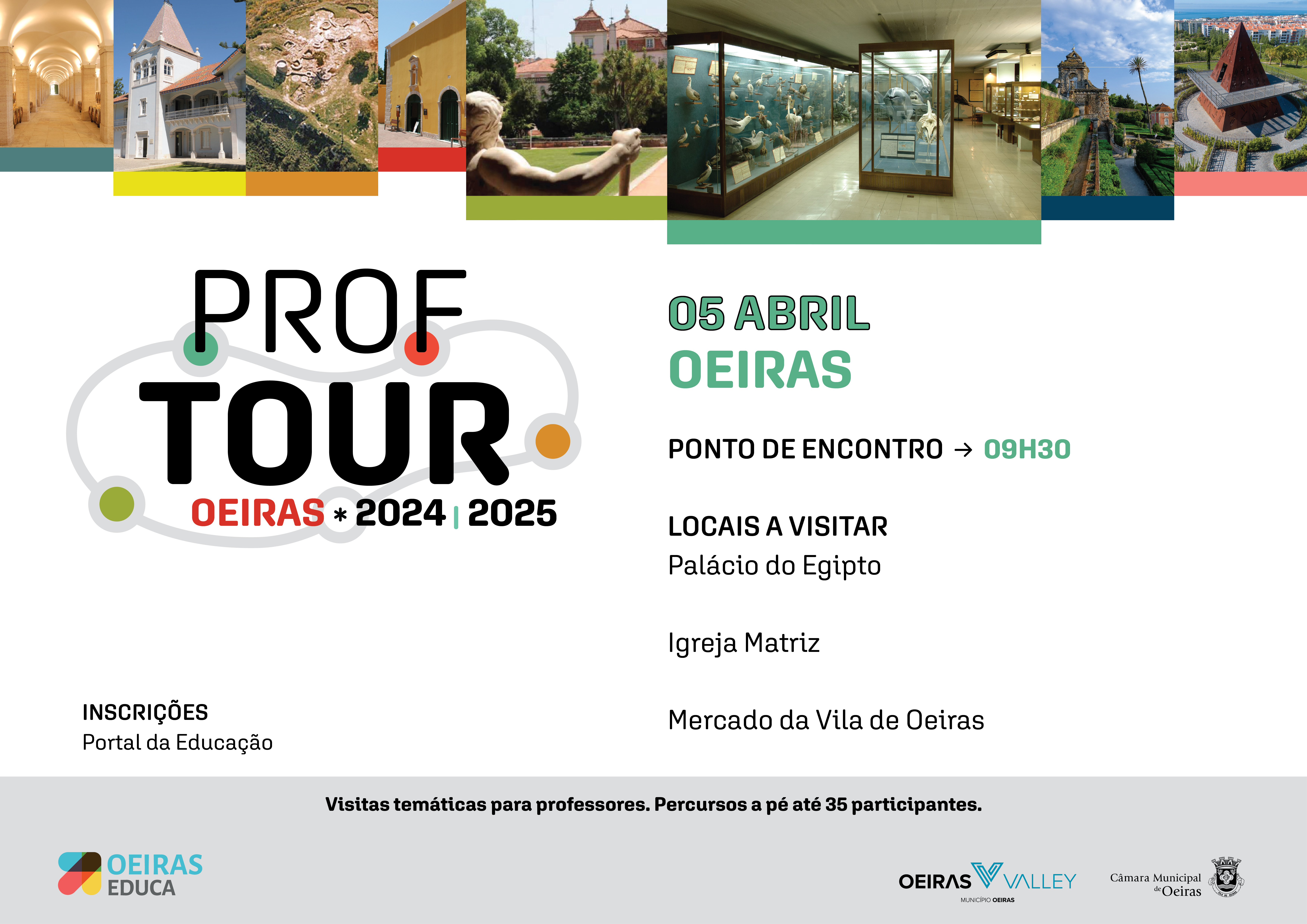 No próximo dia 5 de abril, realiza-se mais uma edição da visita ProfTour, uma iniciativa dedicada aos professores que promove a descoberta do património histórico e cultural de Oeiras. O percurso tem início às 09h40, junto ao Palácio Egito, e terá uma duração aproximada de 2h30.
