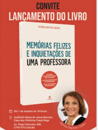 O Município de Oeiras tem o prazer de convidar-vos para o Debate e Apresentação do livro “Memórias Felizes e Inquietações de uma Professora”, da autoria de Patrícia Baptista Coelho.